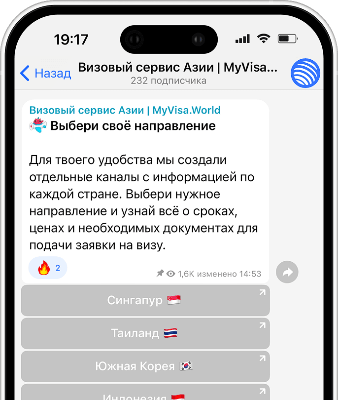 To apply for a visa, just message us on WhatsApp or Telegram. Our team works a 12-hour day, so we can solve any visa issue fast. No matter where you’re headed, your personal visa consultant is always just a message away in your favorite messenger.